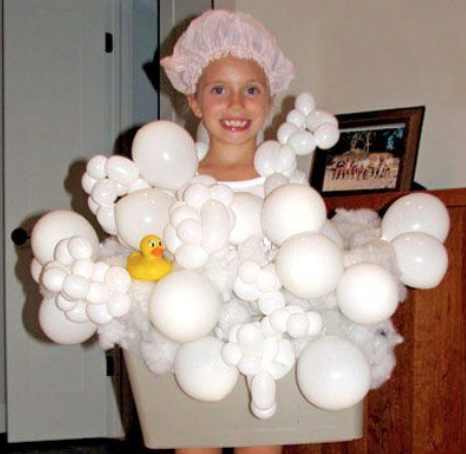 Een emmer met witte balonnen erop en een leuke badmuts op! Voor de finishing touch een bad eendje!